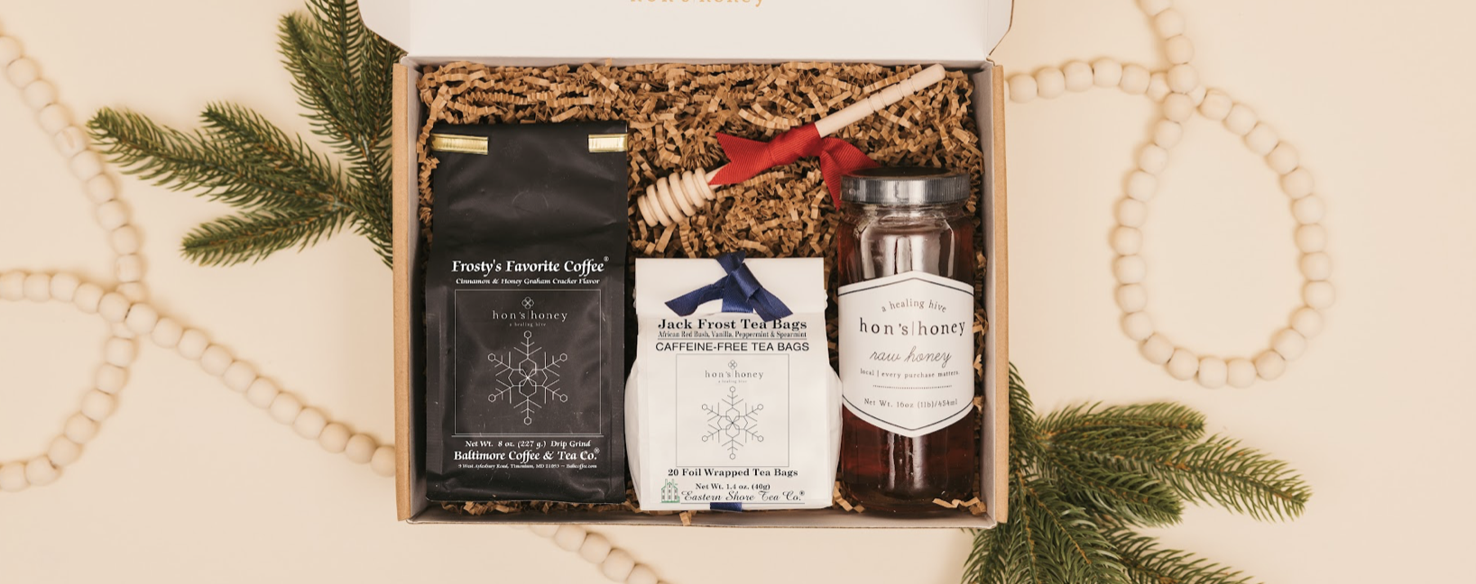 Welcome the cooler weather with a warm drink! We’ve partnered with Baltimore Coffee and Tea Company to bring you a special gift set. Frosty’s Favorite Coffee and Jack Frost Tea are customer favorites and sure to warm you from the inside out this winter. Add honey to both beverages for a touch of all-natural sweetness.